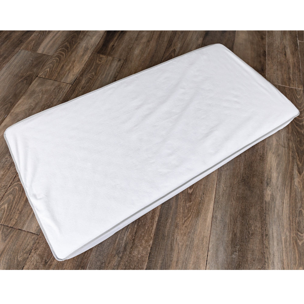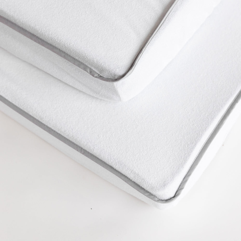 The Kub Cot bed Mattress Cover has a soft, 100% waterproof cotton layer that absorbs spills to keep your baby dry. It's hypoallergenic, breathable, and ensures a comfy sleep. Elasticated corners provide a snug fit, making it easy to put on and remove. Machine washable and dryer safe for quick cleaning.