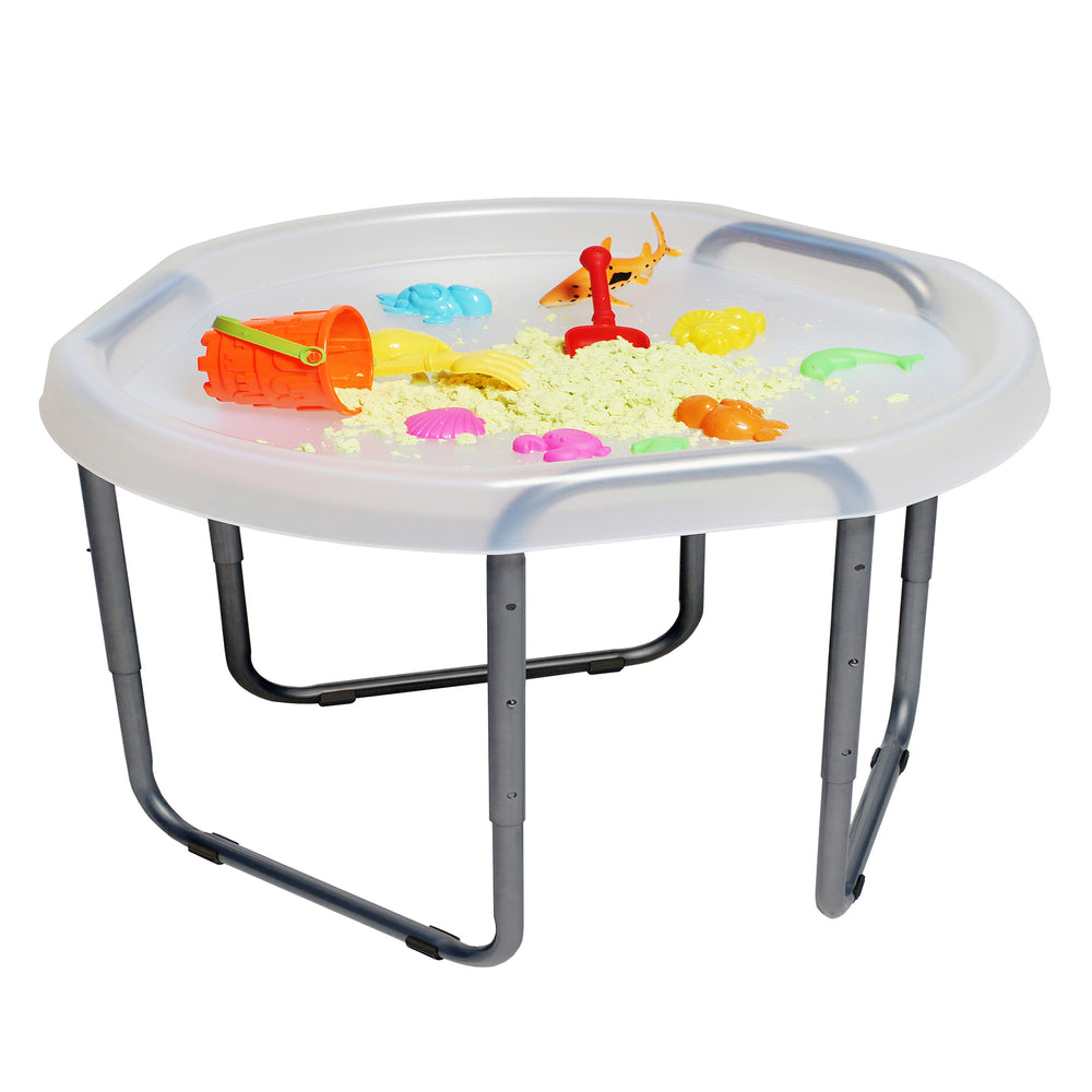The ultimate indoor and outdoor sensory play tray toy for kids! You'll find an abundance of uses for the 90cm XL Hexacle® Tuff Tray. It's perfect for play in the home or for outdoor play in the garden - for the messy stuff! From sand and water to painting and bubbles, get creative with endless activities for little ones. The stand provides 3 adjustable heights and comes with non-slip rubber feet.
