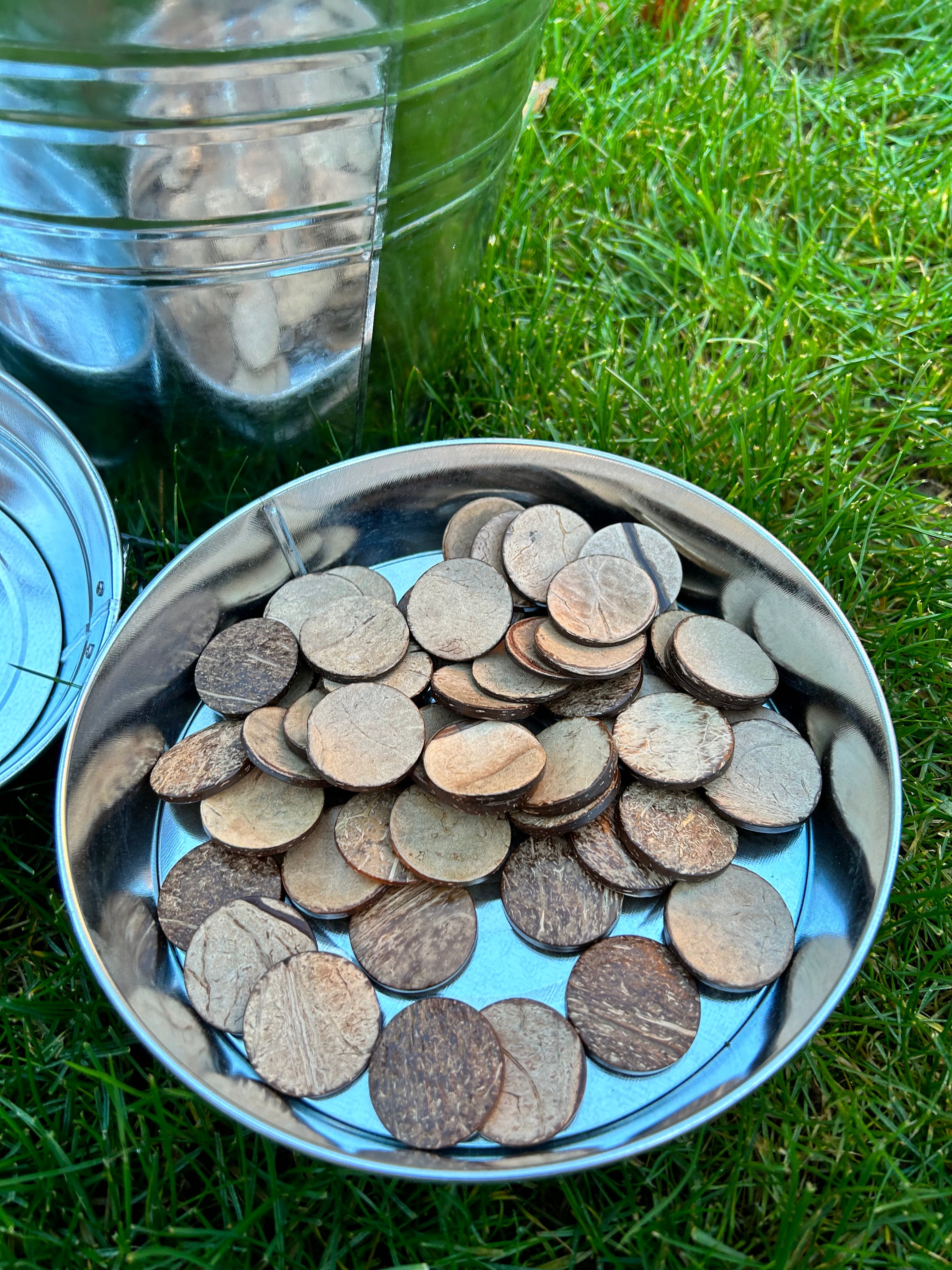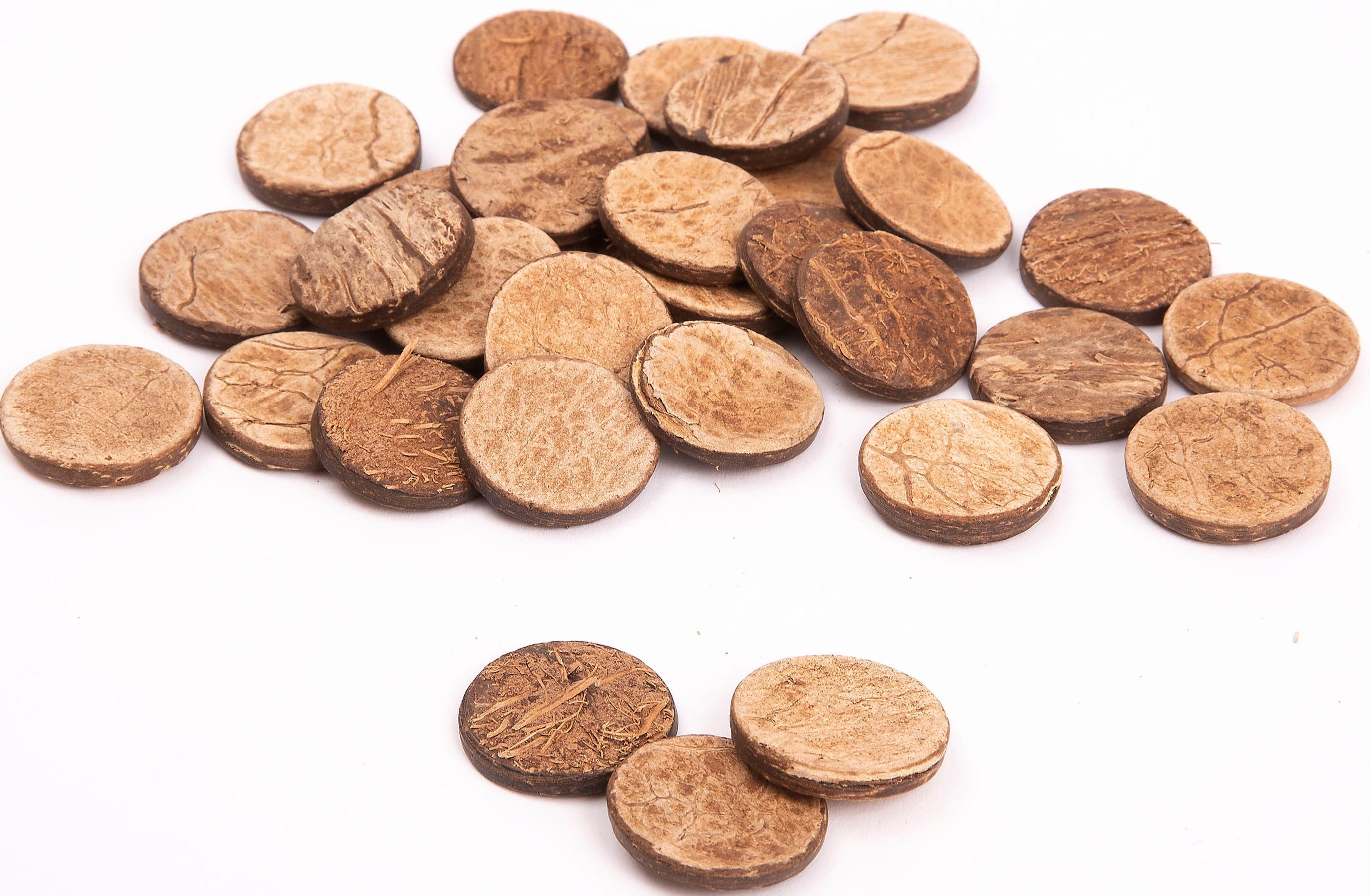 Natural coconut circles. These coconut circles can be used for a range of craft activities and for counting and sorting.