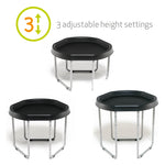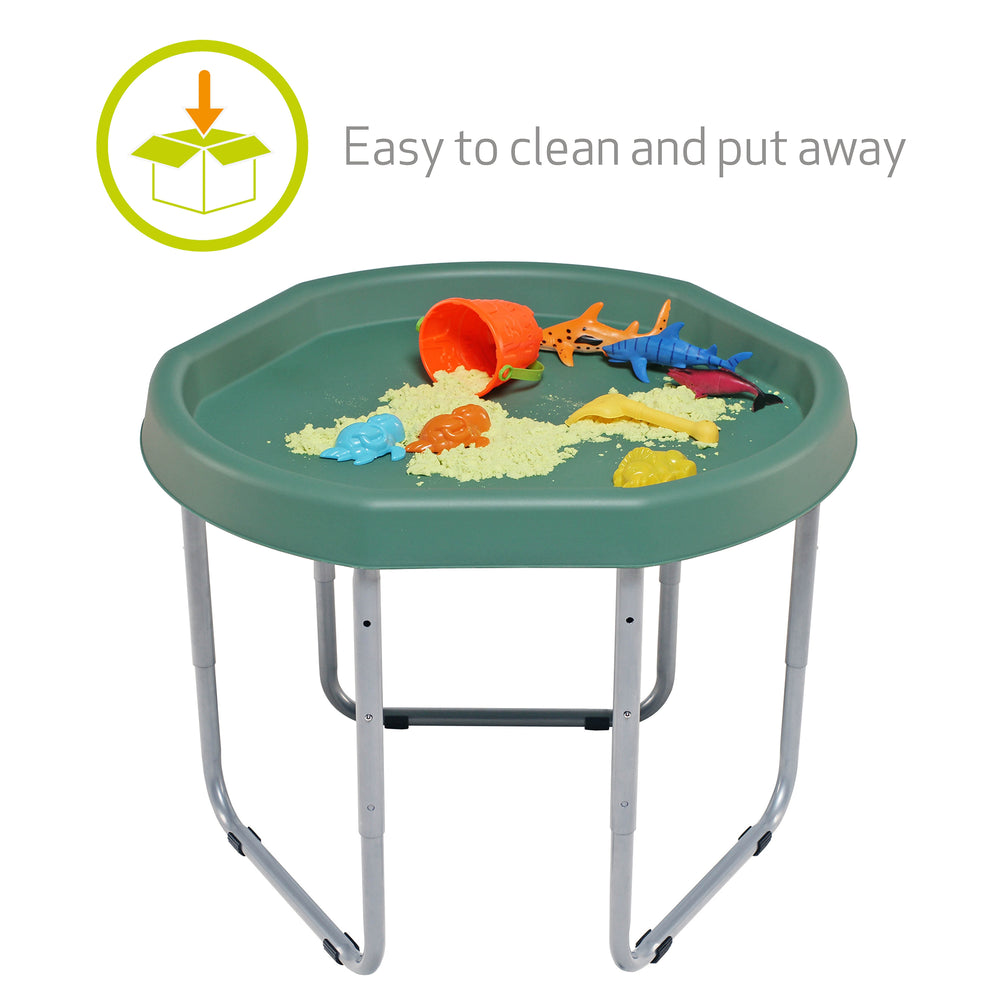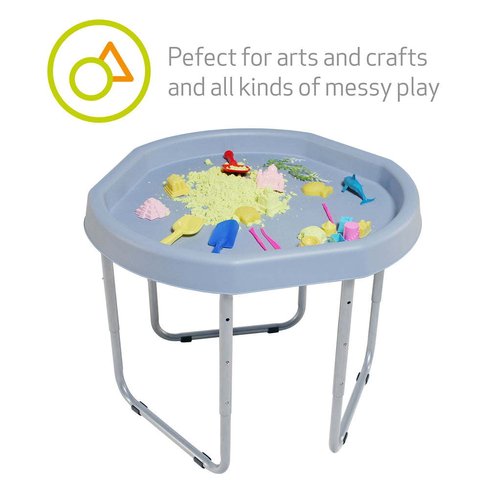 • The ultimate indoor and outdoor sensory play tray toy for kids! You'll find an abundance of uses for the Hexacle® Tuff Tray. It's perfect for play in the home or for outdoor play in the garden - for the messy stuff! From sand and water to painting and bubbles, get creative with endless activities for little ones to enjoy their homeschooling time. This sensory play tray is easy to store, and it can also fit through a standard doorway, making it easy to move around quickly. The stand provides 3 adjustable heights and comes with non-slip rubber feet.