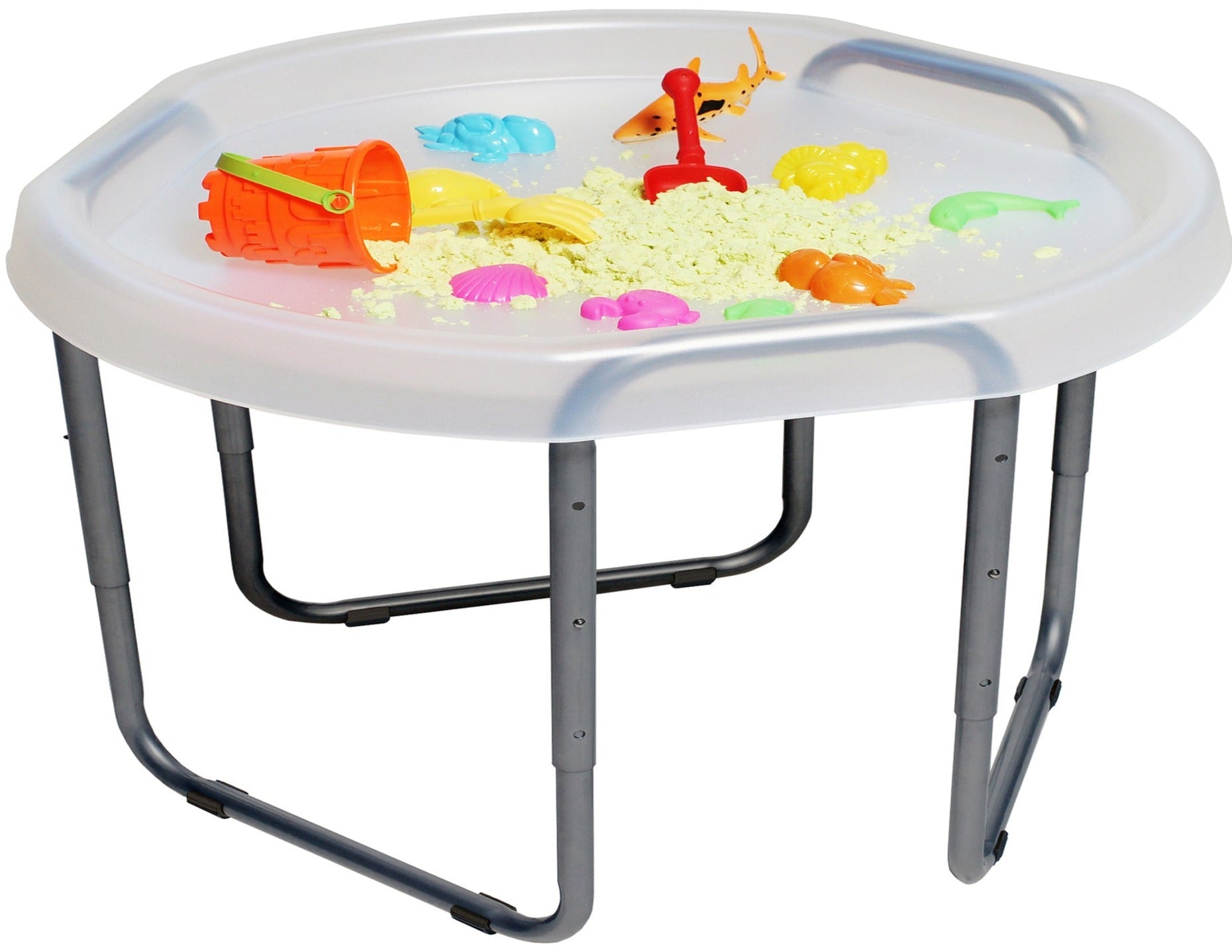 We believe that the Hexacle Tuff Tray with stand is the first Tuff Tray in the UK designed specifically for use by children. The Hexacle Tuff Trays feature a depth 20% deeper than standard Tuff Trays providing more space and protection from spillage, so perfect for all sorts of messy play. They also come in two sizes and this one is the larger model with a 90cm width tray. The generous play surface provides enough space for several children to use together. The rigid tray sits upon a single-piece steel framed stand which has 3 separate height settings.