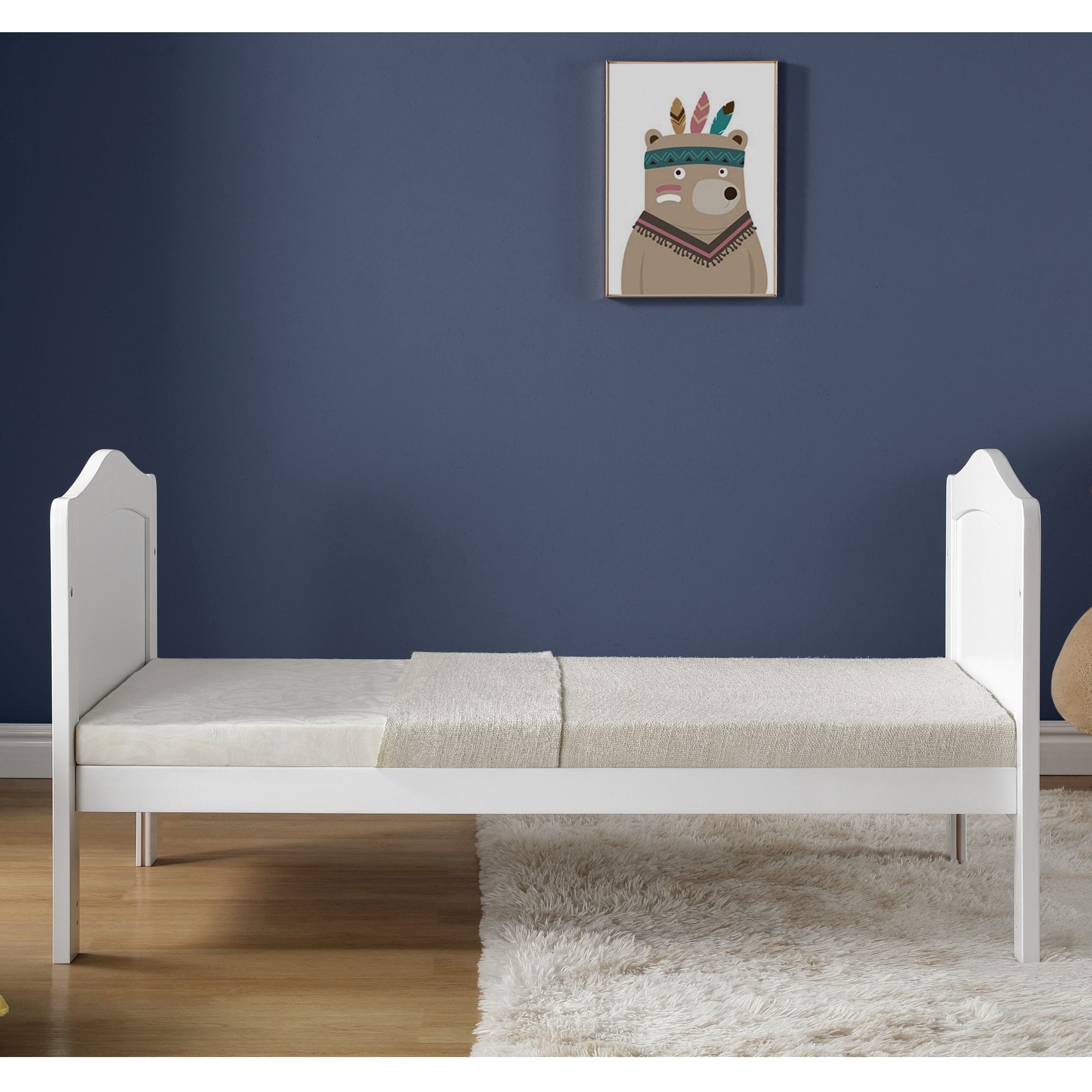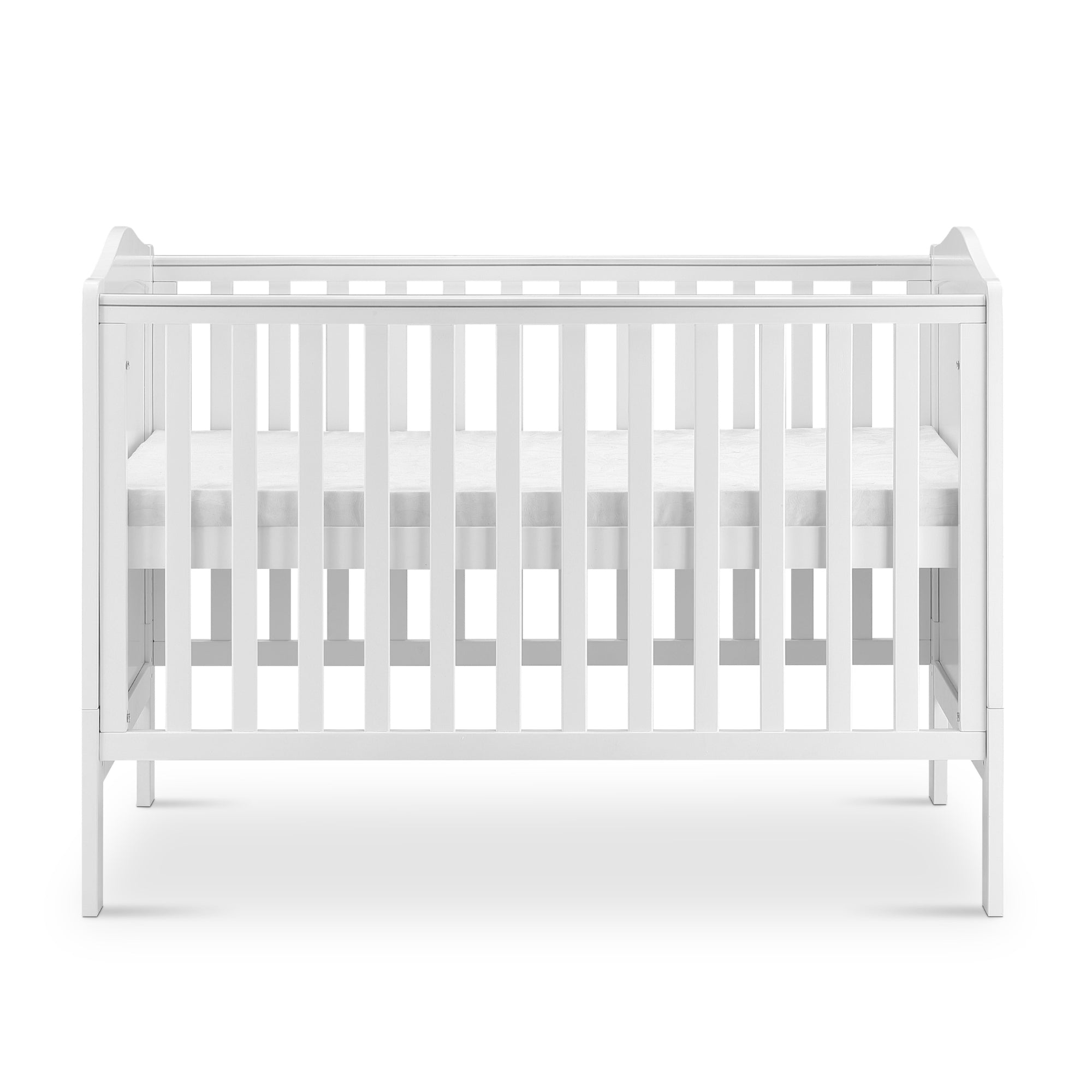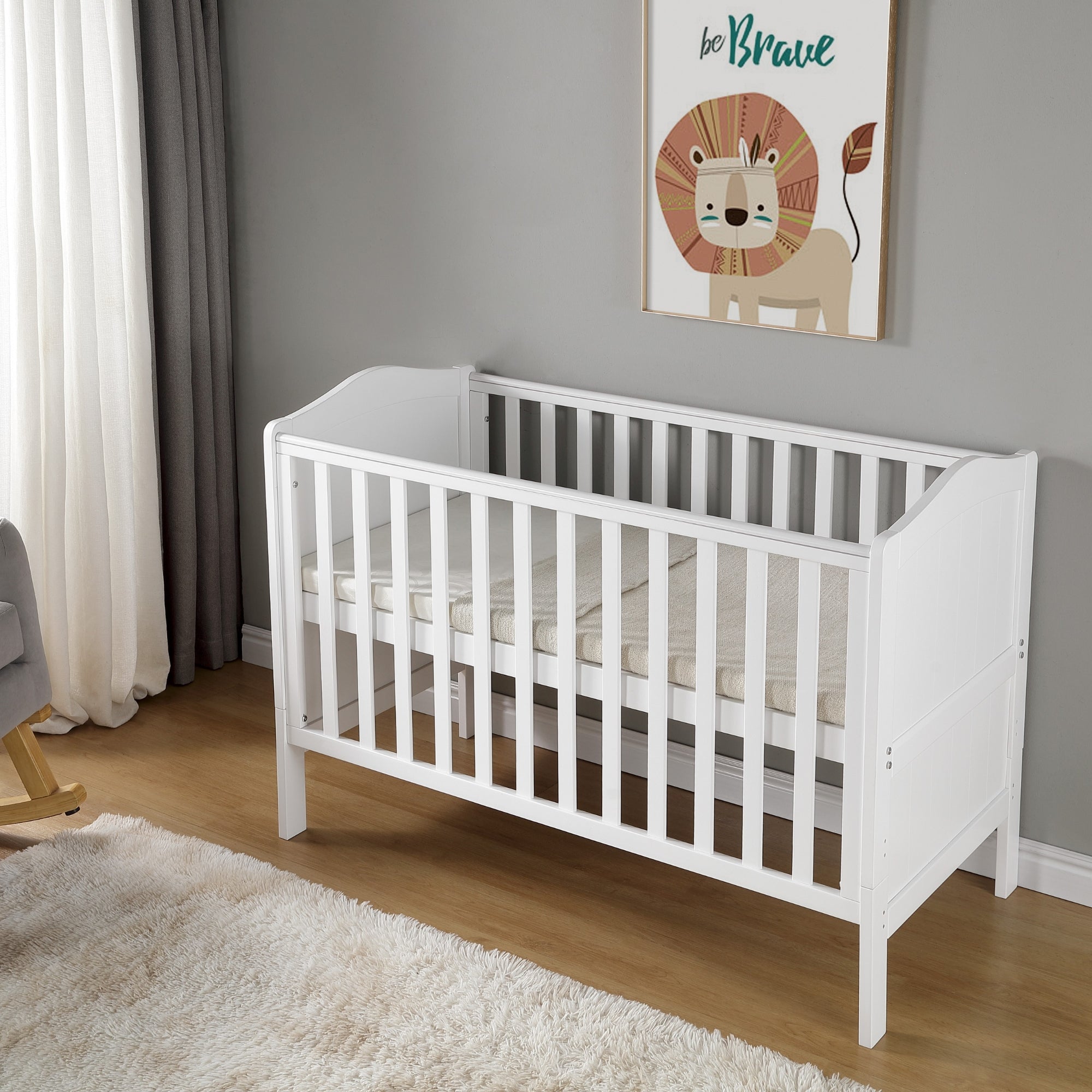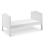 From birth to toddler, this smaller, affordable Seville cot bed is perfect for your nursery. Ideal for small rooms and apartments. When your child is old enough, the sides to the cot can be removed to transform it into a bed. With a clean white colour, this bed is perfect for matching any nursery theme. Classic cot bed in white smooth finish. Teething rails on sides.